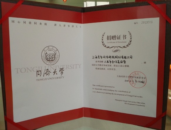 沒有隆重的捐贈儀式,沒有慷慨激昂的捐贈演說。2345.com龐總向同濟大學捐助了100萬元用于同濟大學發(fā)展教育事業(yè)。