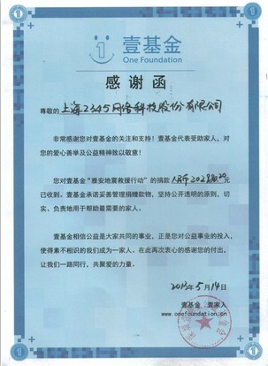 為了感謝大家的善舉,壹基金特發(fā)來(lái)感謝函!